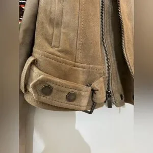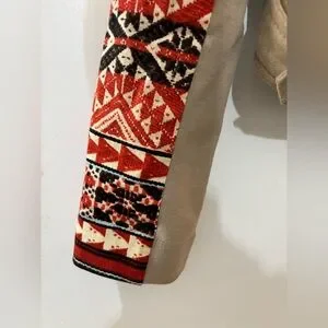 BCBGMAXAZRIA Women Tan Aztec/Tribal Print Faux Suede Peter Moto Jacket Small