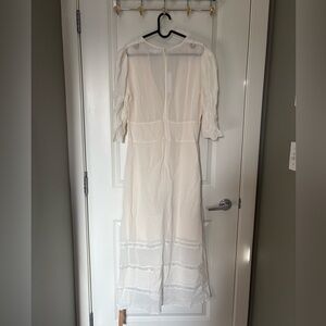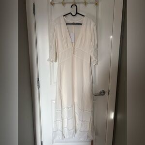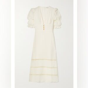NEW NWT Reformation Ginny Lace Trim Georgette Midi Dress Ivory V-Neck Puff Sleeve Size 12