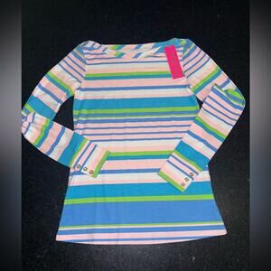 NEW Lilly Pulitzer Long Sleeve Aleah Top PARADISE STRIPE Multicolor Striped Top Gold buttons at sleeve cuff Cotton Spandex