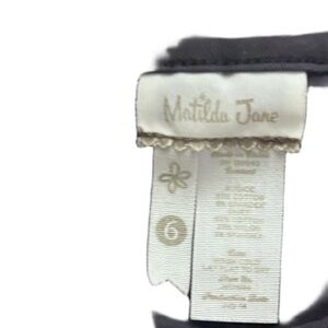 This charming Matilda Jane dress features the brand’s signature whimsical aesthetic with a mix of coordinating prints and textures. The bodice is a solid dark navy with sweet puff sleeves, layered over long striped sleeves for a playful, boutique look. The skirt showcases a beautiful purple floral print with contrasting patterned panels and a floral hem, creating movement and visual interest. Decorative front buttons and ruffle detailing add to the classic Matilda Jane charm. A perfect piece for everyday wear, school, photos, or special occasions.
