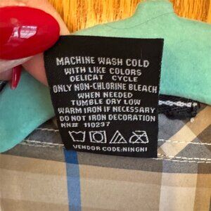 This New York Enyce men's shirt in size 4X is designed for the Big & Tall category. It features a multicolor plaid pattern with short sleeves and a point collar. Made from a woven blend of cotton and polyester, it includes two chest pockets and a button closure. The shirt offers a regular fit, suitable for casual occasions in the spring season. It is machine washable for easy care. The item is pre-owned- very good condition