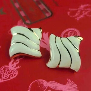 VINTAGE gold tone cream enamel earrings NWOT