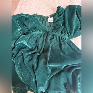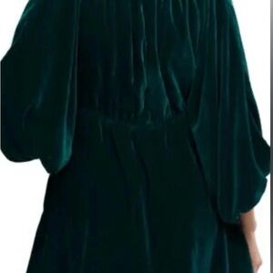 Elegant emerald green velvet dress with a deep V-neck and flowing sleeves. Perfect for special occasions. Bought to wear for Christmas and ended up not getting to wear it due to weather. New with tags!
