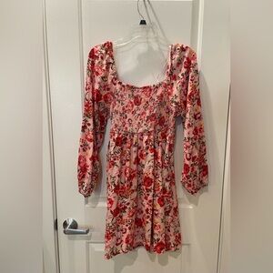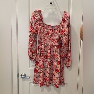 Excellent Condition! Super cute Embrace floral pink dress. Perfect for any occasion, it combines style and comfort effortlessly. Features long sleeve with elastic wrist and smocked back.