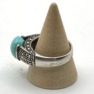 Gorgeous Sterling Silver Genuine Turquoise and Marcasites Cathedral Setting Ring