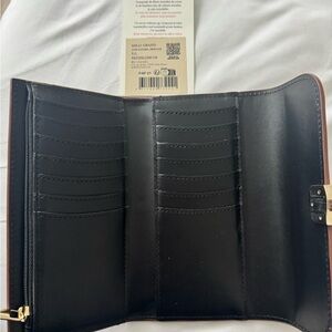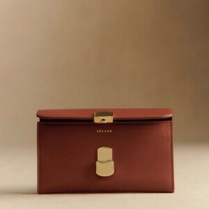 Elegant brown leather wallet by Sézane. Features a gold clasp. Never used. With tag, dust bag and original store bag it came in