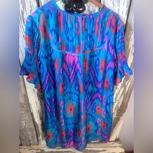 La Plage Celerie Dress Isle Ikat Turquoise Multi Size Medium