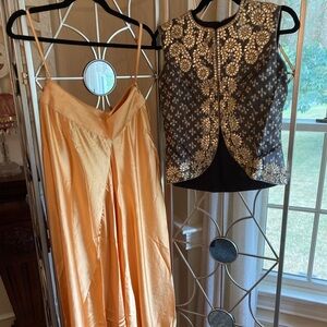 Indian Kalki Exclusive Designer Gota Pati Jacket & Silk Cowl Pant Set