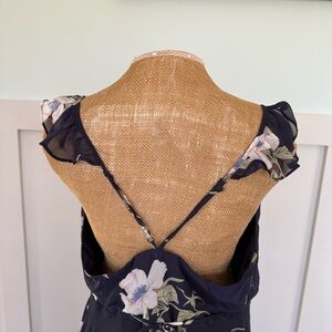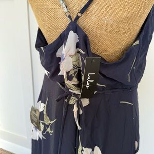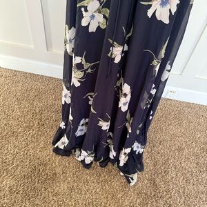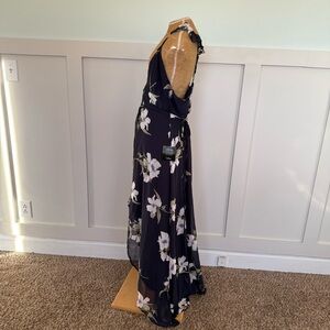 LULUS NWT All Mine Asymmetric Ruffle Maxi Wrap Dress Size Large Navy Floral