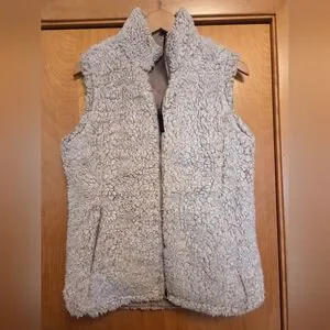 Stylish quilted vest. Features a cozy inner lining. Zippered front with pockets. Perfect for layering. Small spot on front (see pictures).