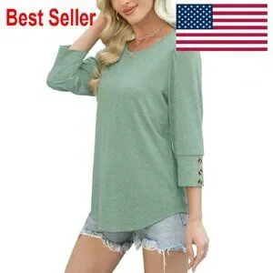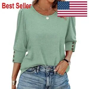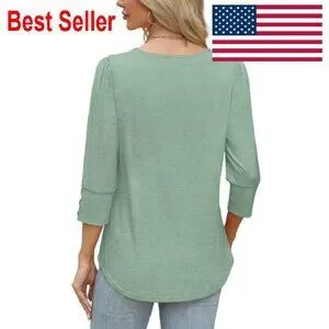 3/4 Sleeve Button Blouse Elegant Chic Casual Work Wear Flowy Fit