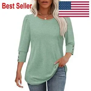 Style: Dressy casual blouse with button-accented 3/4 sleeves