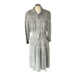 Brenner Gray Denim Style Button Back Dress Size 14 Vintage Look