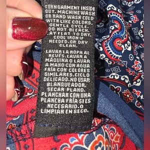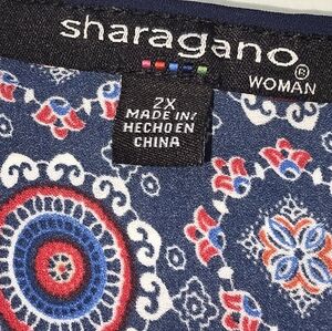 Sharagano boho inspired blouse in a women's size 2X. Features a V-neck with a tie-front detail and elastic cuffs. 100% Polyester.