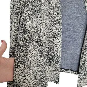 Lightweight textured jacket ideal for layering. Open-front design with long sleeves and versatile black-and-white pattern for casual or semi-casual wear.