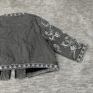 Soft Surroundings Jacket Womens 3X Gray Embroidered Boho Cotton Soutache Kimono