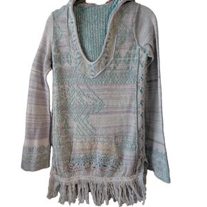 Free People Dream the Story Hooded Fringe Sweater Size XS Extra Small Boho