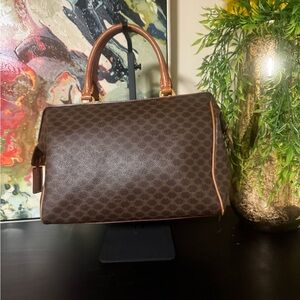 Elegant Celine satchel. Rich brown leather. Classic design. Perfect for any occasion.