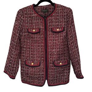Stunning Talbots red and navy tweed skirt suit