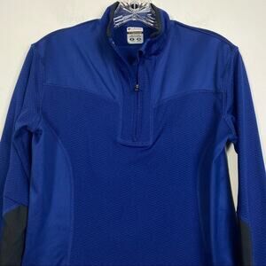 Columbia Titanium half zip pullover in rich royal blue. Mesh panels for breathability and comfort. Lightweight Polyester fabric makes it perfect for breezy days. Size small. Excellent used condition. No flaws detected.