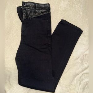 Sleek black jeans with leather accent. Ideal for a modern look. Size 0Long