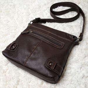 This is a lovely Van Heusen Solid Brown Crossbody with silver hardware. This purse features an adjustable strap, one outer large slip pocket, one outer zip pocket, one inner slip pocket, one inner zip pocket, as well as a full zip closure top:)