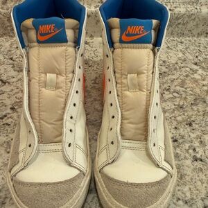 Nike WomensHigh-Top Sneakers - White, Orange, and Blue