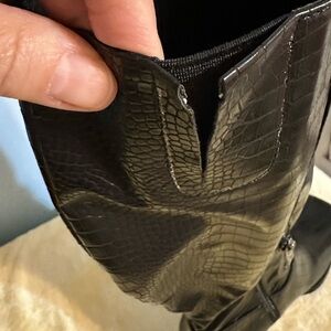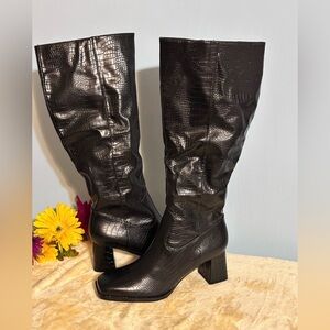 New Suedi Womens Knee High Black Croc Embossed Chunky Heel Squared Toe Boots Sz9