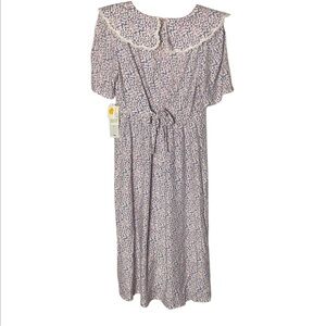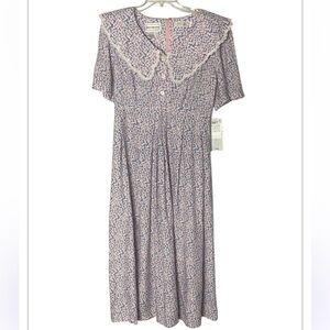 Vintage, Cottagecore, Gunne Sax Style, Prairie, Floral Maxi, NWT, Deadstock, Karin Stevens, 90s Vintage, Romantic, Lace Collar, Coquette, Size 14, Collectible, Tea Dress, Boho, Modest. True Vintage, Modern Fit ,Friendly, tie-back), Dusty Rose & Periwinkle