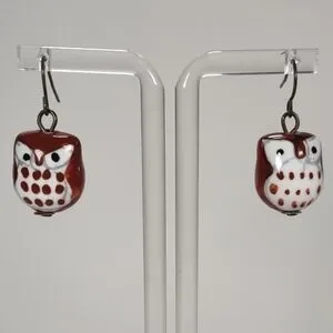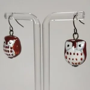 Handmade Cute Little Ceramic Bead Owl Fishhook Post Earrings