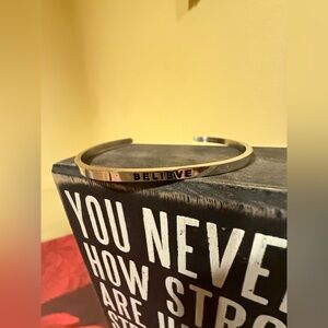 Elegant silver bangle with 'Believe' engraving. Perfect for daily wear.