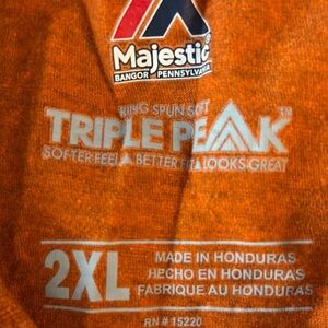 Short sleeve tee with Philadelphia Flyers logo. Bold orange color. Comfortable fit.