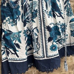 Elegant floral dress featuring a stunning blue and white design. Perfect for any occasion.