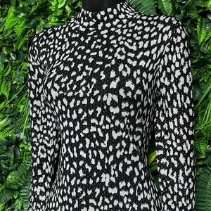 Michael Kors Dress Small Black Silver Leopard Print Mock Neck Knit 3193