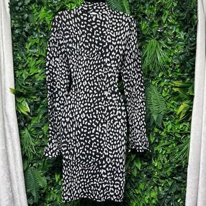 Keywords: Michael Kors Dress, Leopard Print Dress, Black and White Dress, Knit Dress, Mock Neck Dress, Long Sleeve Dress, Bell Sleeve Dress, Womens Dress, Designer Dress, Size S Dress, Casual Dress, Cocktail Dress, Day to Night Dress, Fashion Dress