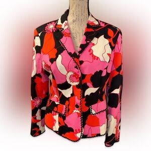 Make a bold statement with this vibrant floral jacket. Perfect for adding a pop of color to any outfit.