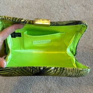 Stylish clutch with a vibrant palm leaf design. Perfect for a tropical look.