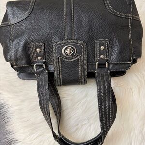Coach Hampton F13961 Pebbled Leather Satchel Handbag Black