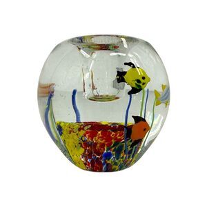Murano Glass Candle Holders VTG paperweight fishbowl aquarium pair