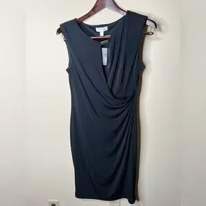 dressbarn Black Draped Midi Dress. Keyhole front. NWT. SIZE 10