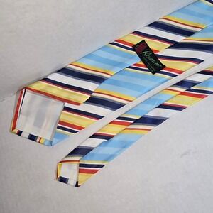VINTAGE Dark & Light Blue Yellow & Red Striped Tie ROMANO Polyester