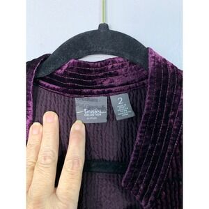 Chicos Velvet Burnout Floral Open Front Blazer Jacket Size 2 (12) L Purple Gold