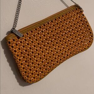 Stylish and unique, this woven bag in vibrant orange is perfect for any occasion. Its intricate design and bold color make it a standout accessory.
