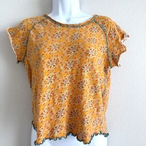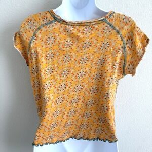 Natural Life Baby Tee Womens Small Yellow Floral Colorful Hippie Beach Summer