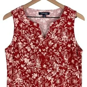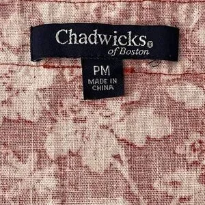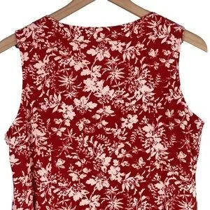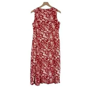 Chadwicks of Boston Dress Medium PETITE Red Floral Print Washable Linen Midi