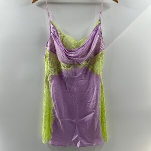 For Love & Lemons Lavender Slip Dress with Neon Green Lace – Size Medium (NWT)