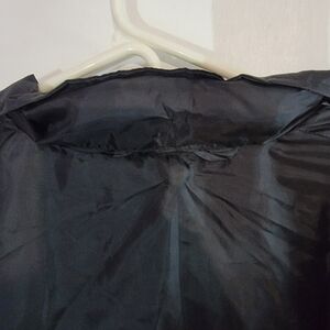 Stylish black windbreaker jacket featuring a colorful logo on the chest. Perfect for casual outings.