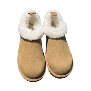 Cozy suede shoes with plush lining. Slip-on design. Perfect for casual wear.