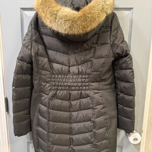 Like new dark green puffer jacket by Michael Kors. Features a cozy fur-trimmed hood and stylish zip pockets. Ideal for winter warmth. Smoke free home. No rips or stains.