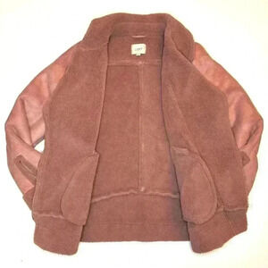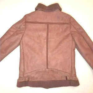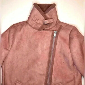 LOFT Women’s Pink Faux Suede Moto Aviator Sherpa Jacket Size- M